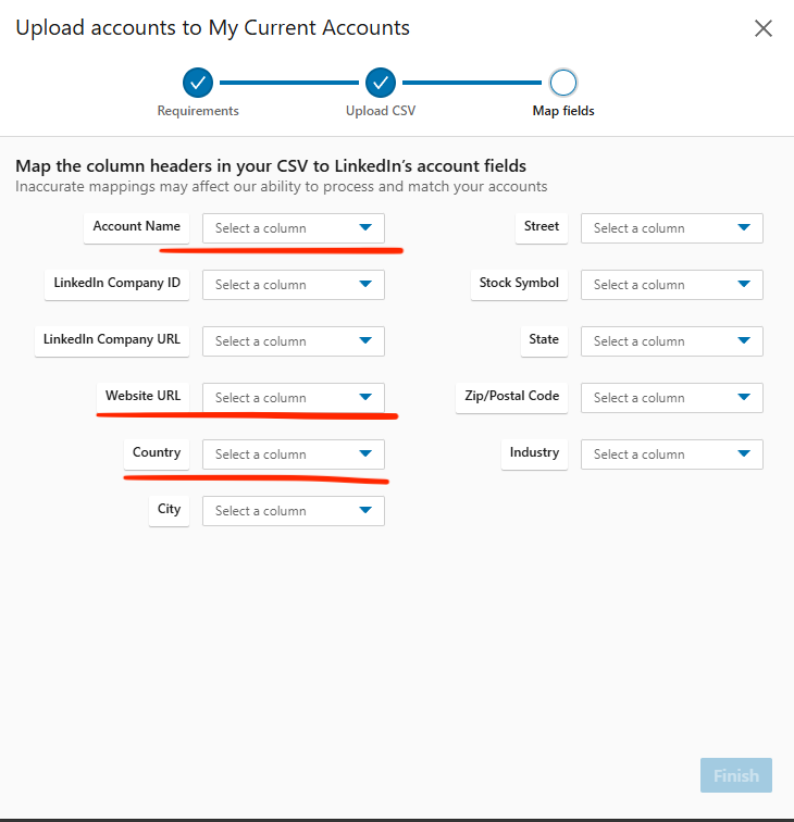 Sokszor nem egyértelmű az Account neve, és a partner nemzetközi (vagy legnagyobb) LinkedIn fiókját fogja a listához kapcsolni. Ezt sokszor megoldja a Country mező beolvasása, de ennek ellenére figyeljetek arra, hogy nem 100%, hogy minden partnert helyesen rögzít, nézzétek át az importált listát.